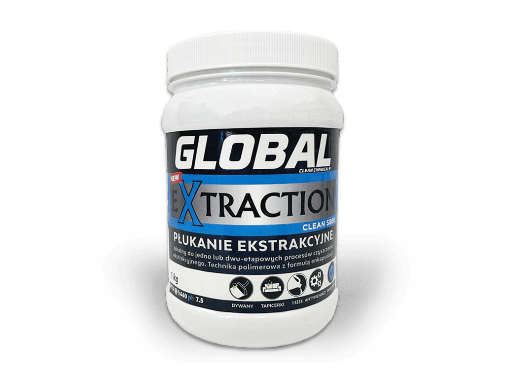 Silnie zabrudzone obszary spryskać wcześniej środkiem Power BlasT z dodatkiem S707 Heavy Soil lub innym środkiem do wstępnego rozpuszczenia brudu Do tapicerki i tustych plam organicznych – białkowych zastosuj Global Enzym, a następnie kontynuuj czyszczenie ekstrakcyjne wg standardowej procedury